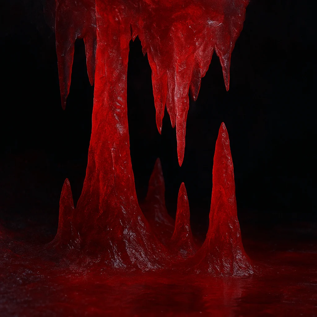 Źródło tragedii odnaleziono stosunkowo szybko. Na obrzeżach jednego z obozowisk, przy wejściu do systemu jaskiń, natrafiono na skupiska stalaktytów i stalagmitów w intensywnie czerwonym kolorze. Formacje były częściowo zamarznięte, a częściowo miękkie, jakby w pół drogi między lodem a żelem. Ich struktura schodziła w głąb, w stronę zamarzniętego koryta czerwonej cieczy, które znikało w ciemnościach jaskini.